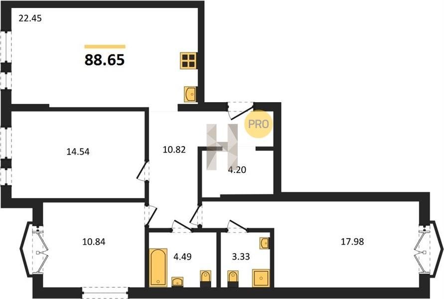 Сам комплекс переменной этажности, на выбор студии и квартиры с 1–4 комнатами, европланировки площадью от 29 до 148 м², мастер-спальни, террасы и панорамное остекление, высота потолков 3 м. Около 80% квартир имеют вид на воду, включая Галерную гавань, Финский залив и Большую Неву.