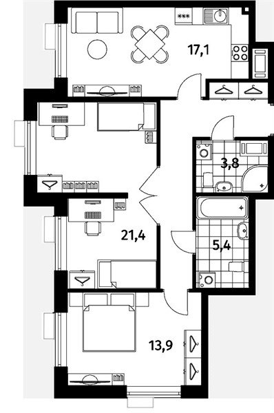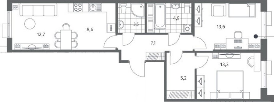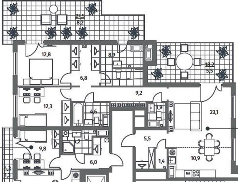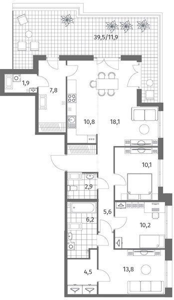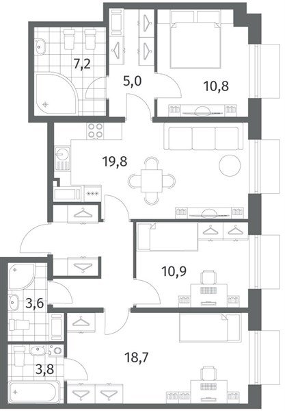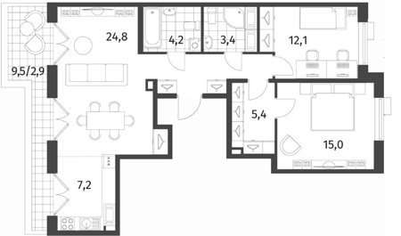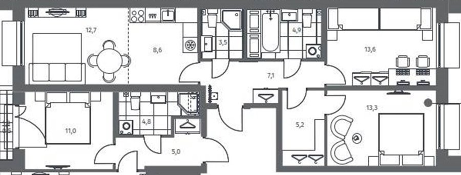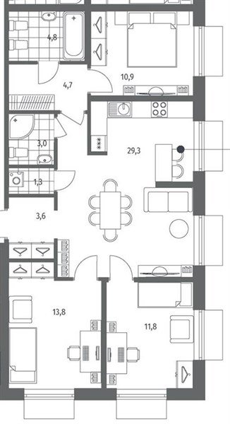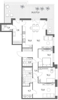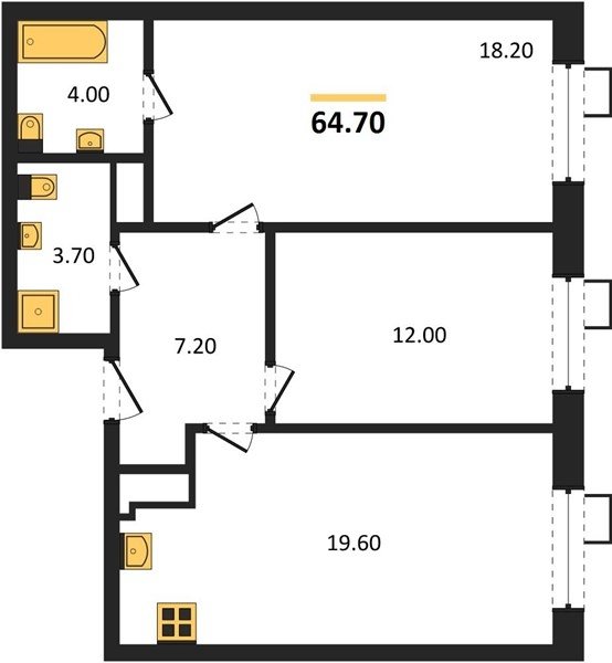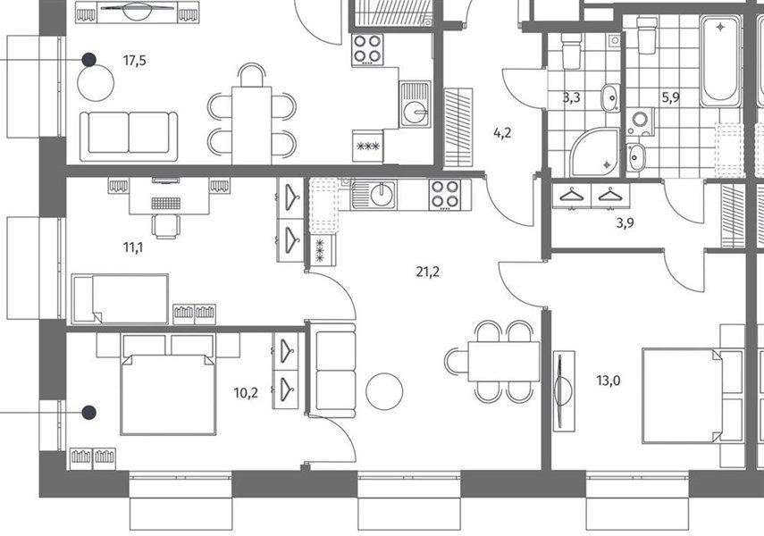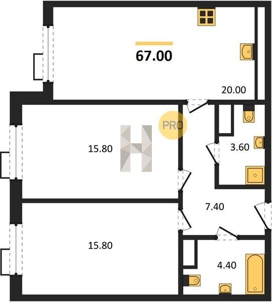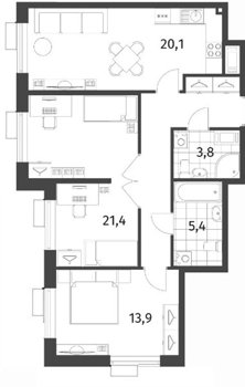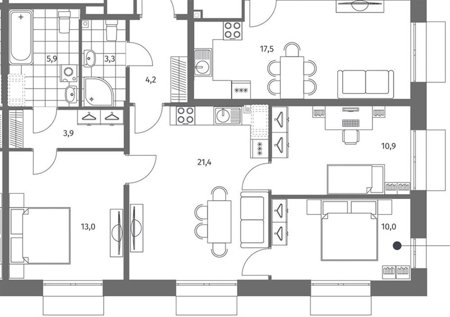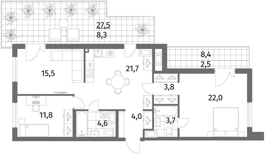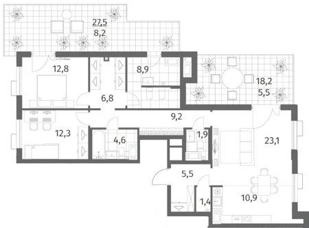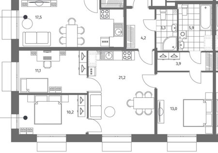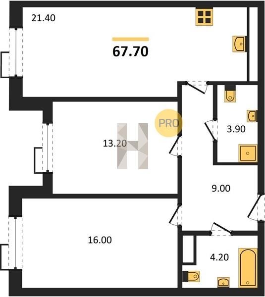 В ЖК представлено множество планировочных решений: от классических однокомнатных до 3-ех комнатных квартир европейского формата. Часть квартир на первых этажах обустроена индивидуальными террасами-патио, а на верхних предусмотрены квартиры с просторными открытыми террасами.