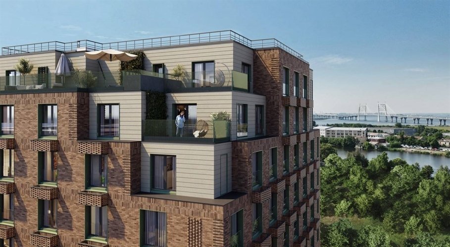 На верхних этажах открывается вид на живописный Финский залив и на Неву, а в квартирах на нижних этажах уютные приватные патио.