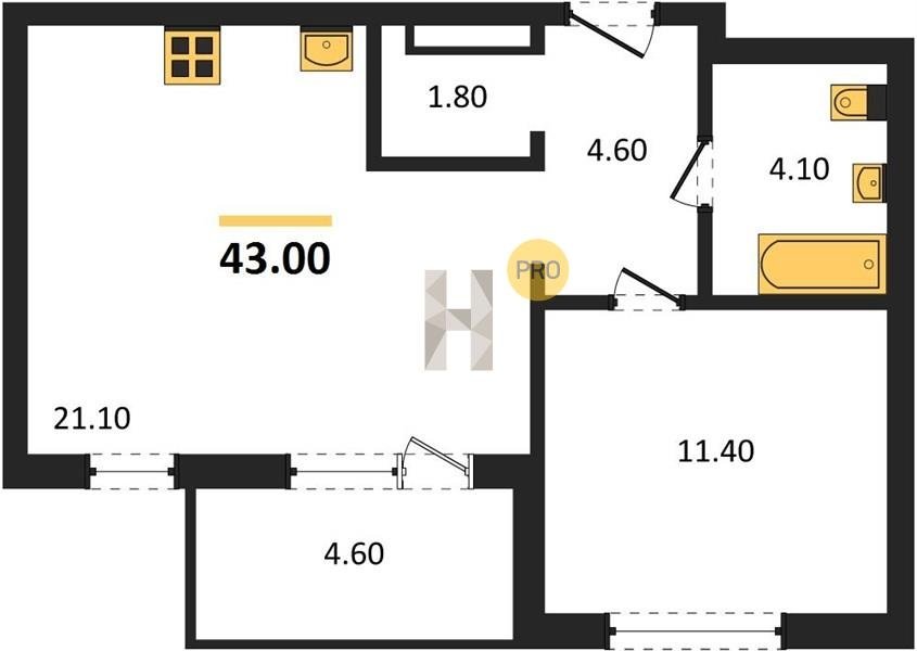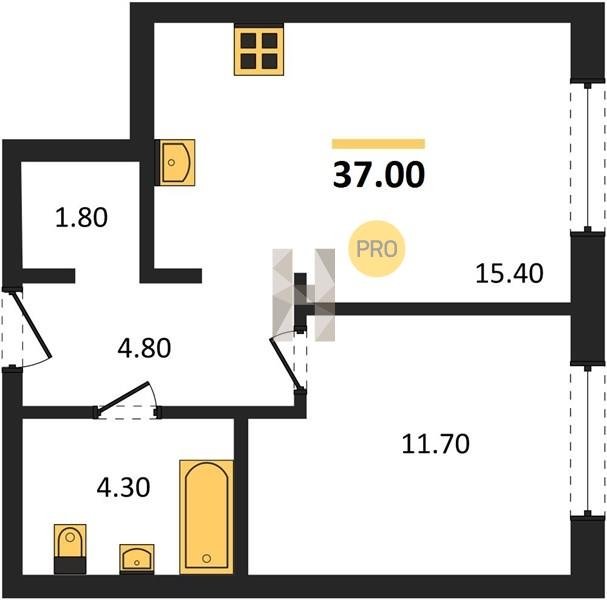 Площадь от 37 м2