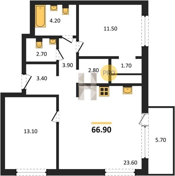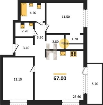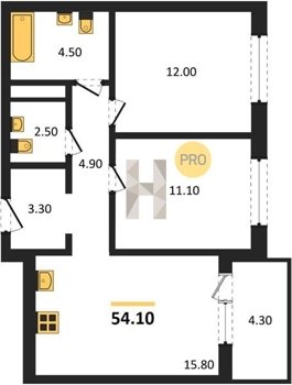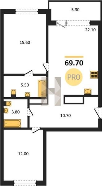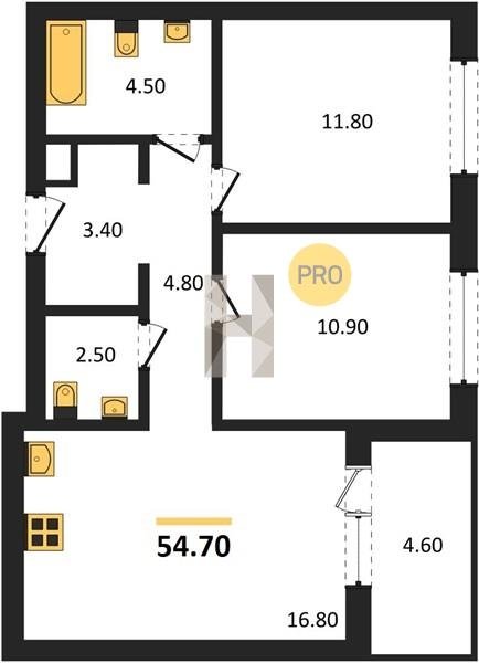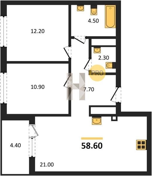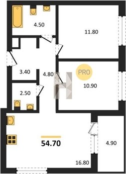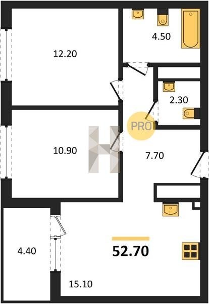 Площадь от 52.7 м2