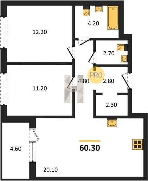 Площадь от 27.7 м2