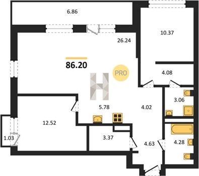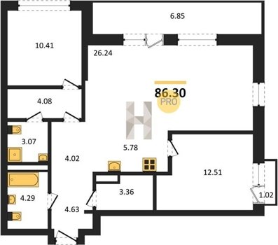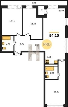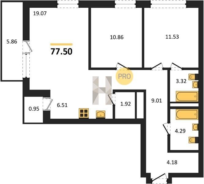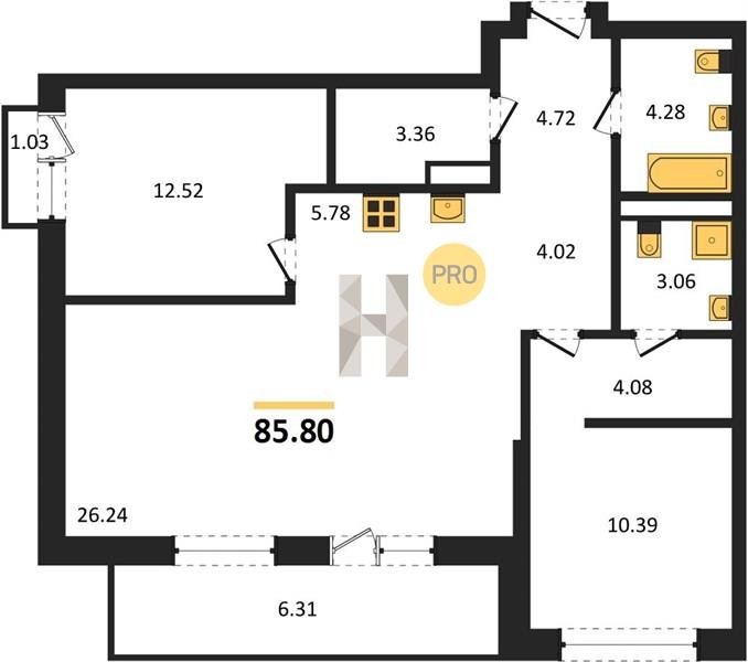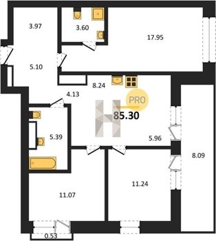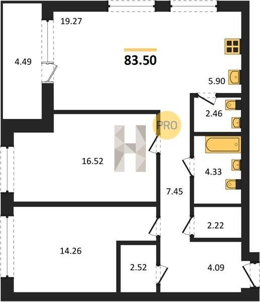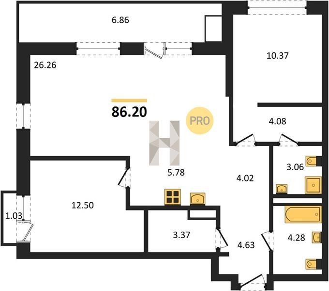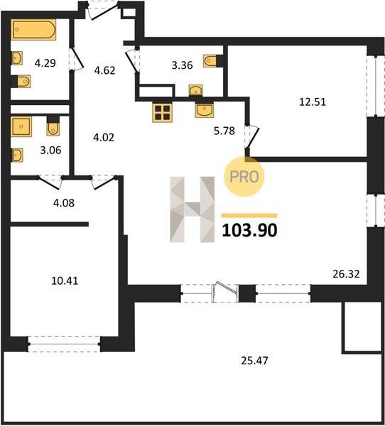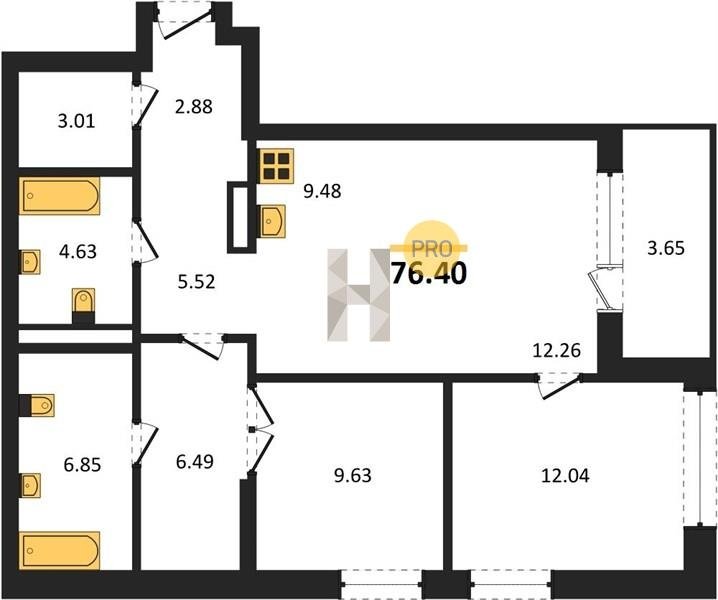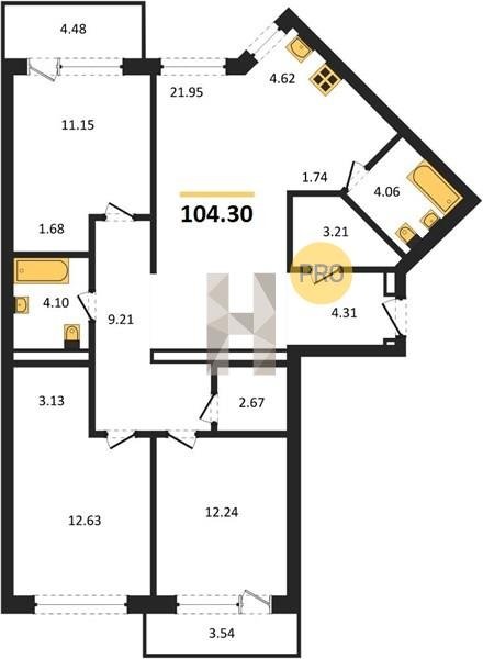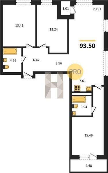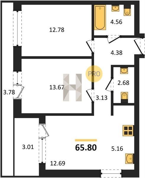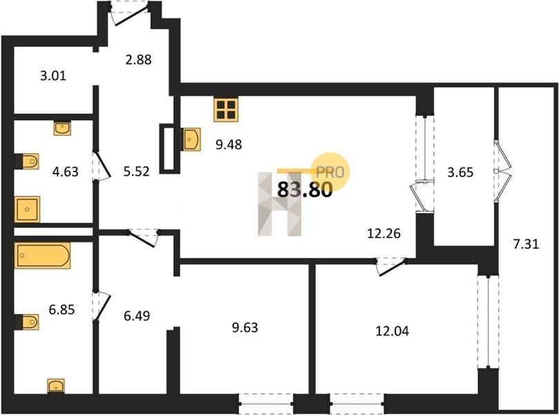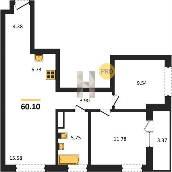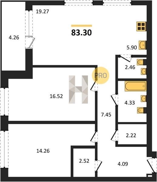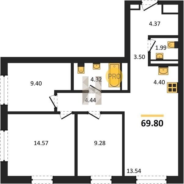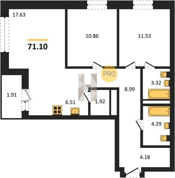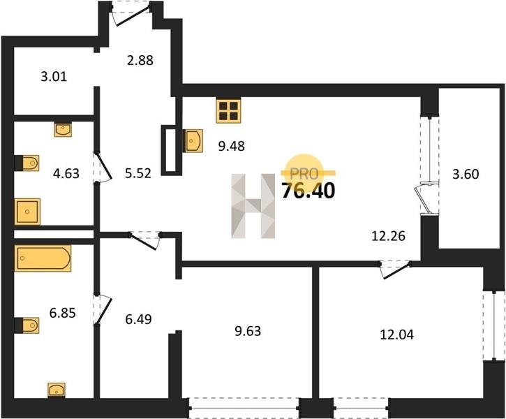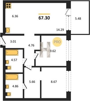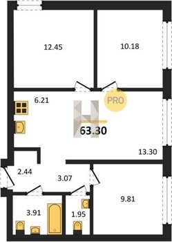 Площадь от 63.3 м2