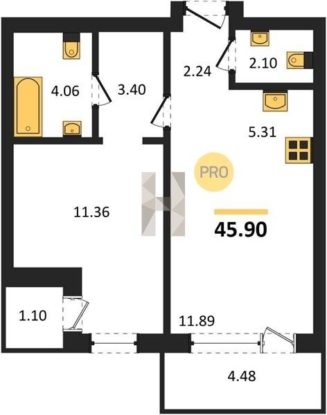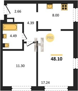Площадь от 48.1 м2